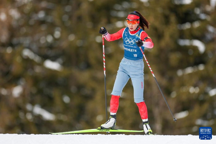 2月6日,中国冬季两项队队员闫星元在训练中。
