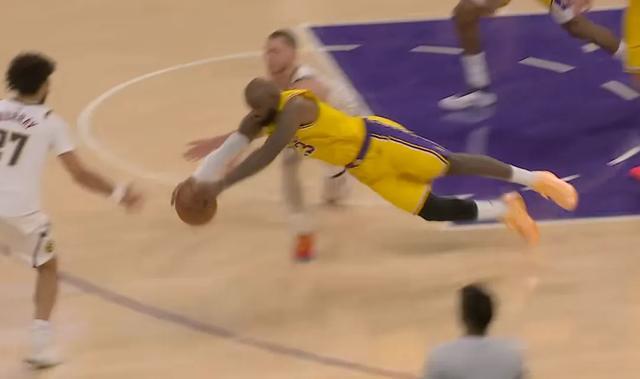 虽然这球最终以争球结束,虽然掘金最后也争到了球权,但当詹姆斯把自己扔出去的那一刻,这场球湖人想要争胜的决心到达了顶峰。这也是体育比赛最有魅力的时刻之一,一个41岁的老将如此不顾一切、如此全情投入,哪怕只是一场常规赛。