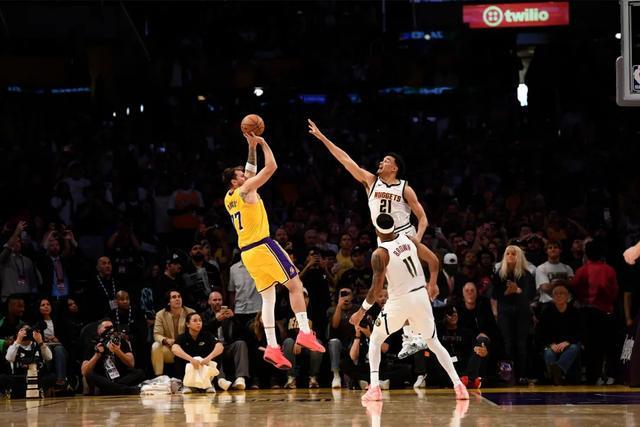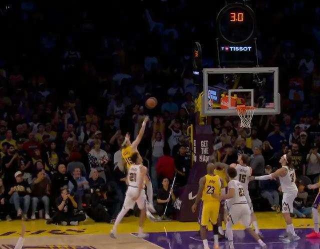 第四节比赛,掘金的三分手感彻底打开,单节15中7的三分,其中在两侧底角就进了6个。好在湖人这边也能续上火力,没有彻底崩盘,里夫斯末节14分让湖人等到了东契奇的复苏。东契奇之后的三分+三次罚球,让比赛重新回到同一起跑线。